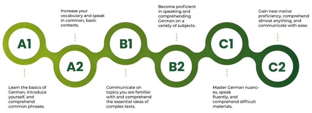 Achieve fluency in understanding and speaking German, enabling you to engage in complex conversations and discussions. You’ll be able to express your ideas clearly and effectively on a variety of topics