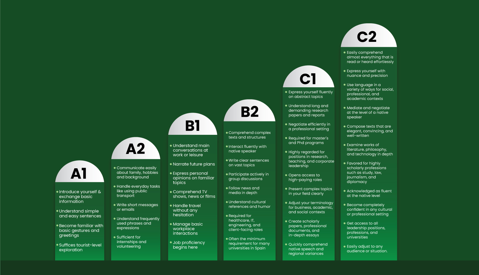 Learning Spanish gives you access to international opportunities in more than 20 countries and offers doors to employment in business, translation, tourism, education, diplomacy, and media.